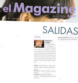 Corbatas Chinas es una pieza que nos propone un relato no lineal. No respeta los tiempos cronológicos, ni una lógica espacial en el relato. Propone, además de los cuatro personajes humanos, la participación de una máquina de “hacer fomentos” como otro personaje que, a modo de coro testimonial y/o pitonisa, va cantando lo que no está dicho en escena. Una peluquería de barrio, a la antigua. Las calles de ese barrio, una vivienda, una terraza, son los ámbitos propuestos por el texto. El planteo dramatúrgico nos propone una estética surrealista, melodramática, con aristas de tragedia, en relación a lo irreparable de lo ocurrido, como marca de un destino.Nuestra intención en la puesta será la de profundizar la línea surrealista en todos los aspectos no actorales. La escenografía y el diseño de luces serán concebidos como una unidad creativa que generará espacios virtuales que puedan ser redefinidos con cambios de luz, proyección de imágenes y, fundamentalmente, a través del uso que le den los actores. La creación musical de las canciones que “interpretará” la máquina de “hacer fomentos” tendrá un sesgo burlón, como jugando, casi cruel, con el melodrama y la tragedia, en un relato cercano a lo exasperante. El peso más gravitante en el concepto de puesta estará en acentuar la dualidad.Queremos lograr un equilibrio virtuoso entre lo surrealista de los elementos visuales y sonoros y un realismo psicológico en la actuación.La idea es trabajar el melodrama sin “melodramatizarlo”, actuar la tragedia sin la representación trágica, trabajar el amor sin eufemismos, actuar lo poético sin recitados. En fin, la propuesta es lograr un estilo de actuación riguroso y verosímil, como en la vida, sin la teatralidad que generalmente se agrega ante un texto trágico, melodramático y surrealista.